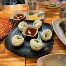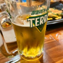 海鮮チヂミ、キムチチヂミ、餃子、キンパ、ラーメン、生ビール 1人29800ウォン 3時に昼ご飯