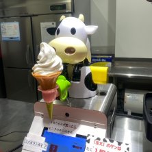 ミルちゃんソフトクリーム コーンを牛のミルちゃんにセットすると自動でソフトクリームを入れてくれる😆 可愛くてもう1回買いたくなった👏