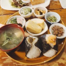 おにぎりモーニング。 おにぎりの具材の山椒七味が美味しかったー🙆