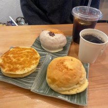 チョコ生ドーナツ あずき とらやき 焦がしきなこ ホイップカスタードのパン ホットコーヒー アイスコーヒー