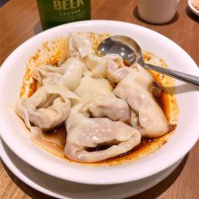 @台北で红油抄手ピリ辛ゆでワンタン(海老)
