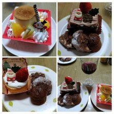昨日の朝に行って買ったクリスマスケーキとプリンアラモード。夜の食後にワインで乾杯🍷🎅🍰