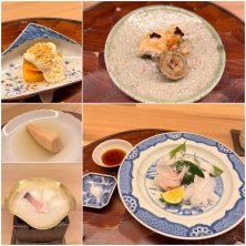 京都 「東山 緒方」 ◎お刺身 明石の鯛 アオリイカ ◎かぶらむし 甘鯛 ◎天ぷら 伝助穴子 堀川ごぼう 山椒 ◎柿 お豆腐 ◎海老芋 かぶらむしの味付けは塩のみ 蕪の水分と甘鯛のお出汁だけで美味しい
