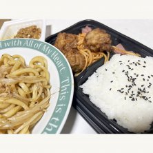 🍽️からあげ弁当🍱+焼きうどん #ともファミリー飯テロ部 #夕方に打ち合わせでファミレス行ったけど #でもそこではドリンクバーで我慢した😛 #その帰りに買った弁当でお肉摂取🍖