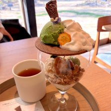 今日のおやつ お茶屋さんのカフェでパフェと和紅茶 いろんな種類のお茶や紅茶が入ってる福袋も買いました🍵