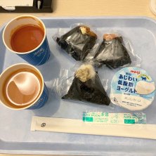 2025/12/06・朝ごはん ○ミネストローネ ○野菜スムージー ○おにぎり(チキン南蛮 / たらこ / 焼き鯖) ○ヨーグルト