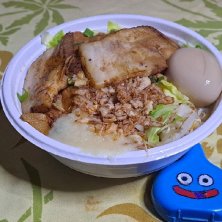 昼御飯 その②-1 【UberEats/語るに落ちたな】 二番人気。期間限定2割引。 ②レアチャーシュー1枚追加豚骨爆盛り汁なしラーメン 2,200円→1,760円 麺300g(タレ60g) 120円 レアチャーシュー1枚 180円 もやし標準、背脂標準、ニンニク標準 0円 ノーマル汁なしラーメンからレアチャーシューを2枚追加♪ 美味しかったです♪