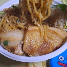 昼御飯 その②-1 【UberEats/語るに落ちたな】 一番人気 ②豚骨爆盛り汁なしラーメン 1,975円→1,382円 麺300g(タレ60g) 120円 もやし標準 無料 背脂標準 無料 ニンニク標準 無料 こんな感じで届きました♪ チャーシューが2種類で合計3枚♪