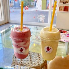 ミックスベリーヨーグルトスムージー+アップルパイナップルスムージー☻ 好きなフルーツ組み合わせてスムージー作ってくれるお店(๑˃̵ᴗ˂̵) タイ旅🇹🇭