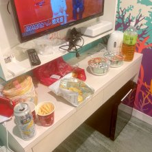 ディズニーシー後の夜のこのビジホで食べるコンビニ飯とお酒とおつまみタイムが好き 明日はランド 今日は課金しまくってシーアナ雪ラップンツェルピーターパンソラリントイマニ乗れました 年越しどん兵衛たべる