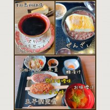 【田島珈琲店】 *玄米五平餅定食 2本入りの五平餅は甘辛く生姜が香るくるみ味と 風味を生かし甘み少なめの香ばしい郡上味噌味から 選べます今日はわがままオーダーで1本ずつ笑 玄米のプチプチした食感も面白い♫ セットにするとチーズケーキの他、ぜんざい、玄米 おはぎ、プリン、栗の渋皮煮などなど「今日のおやつ」 から手作りスイーツを選ぶ事ができます *ぜんざい こちらもセットでコーヒー付きに 箸休めの塩昆布がいい! 小豆のホクホク感に幸せな気分に^^ 粋な店主の珈琲と五平餅が楽しめるお店でした◎