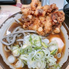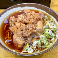 日暮里一由の流れを汲む小岩の芽衣や スタッフはミャンマー人3名で切り回していた 値段は一由と同じ ジャンボゲソ天が品切れで普通のゲソ天200円でもボリュームもあり自分はこちらが気に入った ジャンボとの差額80円で生卵インで700円 汁が少し薄めと同行した倅談 帰りに揚げたてのゲソ天をお土産に