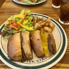 北千住に新しくオープンしたお店 ジム後に友達と🍔 切ってあるハンバーガー サラダセットで🥗 なんと断面を焼いてあります 食べると玉ねぎの甘みが広がりました そして肉汁の油がバンズにしみて香ばしい レタスやトマトがないので肉肉しいです 食べたことないハンバーガー🍔 ポテトもホクホク 美味しかったです♪♪♪ でも、カロリーは高そう😅