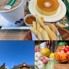 おやつ★2026.1.10 期間限定にそそられ… *ぶどうとりんごのスパークリングサングリア *ふんわりスフレパンケーキ🥞 商売繁盛の神様、えびす社へ 十日戎に初めてお参り。 折しも、この日は見事な青空で 暖かな1日でした(╹◡╹)
