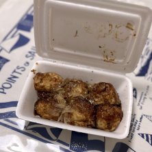 たこ焼き🐙 家電量販店に出掛けていた(らしい)オットが、たこ焼きをお土産に帰って来た 名物のたこ焼き🐙は、今時6個100円 『お父さんがたこ焼き買って来た〜』 息子の声掛けでお昼寝から起きた もちろんウトウトしつつではあるが 起きて1パックを娘と半分づつ食べた 時間は4時 たぶん…1パック(6個)食べたら夕飯に触るので 浮いた1pcは、パートナーにお土産