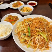 土曜日ランチは 勝園さん😋 焼きそばのボリュームに ビビる٩( ᐛ )و