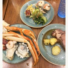 今夜はHyatt Hotelのビュッフェで蟹の食べ放題。ら