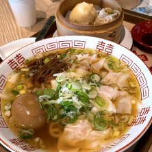 えびワンタン麺セット セットは焼売、豚まんと杏仁豆腐