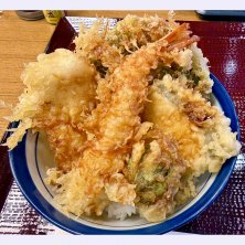 久しぶりのてんやで早春海老天丼 1,090円♬ 鹿児島県錦江湾姫甘えび、宮城県産メダイ、静岡県産芽キャベツなどがのっていますよ😊