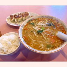 昨日のランチ Aセット(辛味噌ラーメンに変更、半ライス、餃子) 1,300円 部下ちゃんと区内巡視の途中でランチ 美味しくいただきました♪