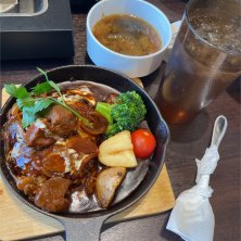 *牛すじ煮込みハンバーグ ¥1,350 *サラダバーセット ¥770