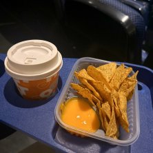 娘おすすめのズートピアを観にきました(^^) 家にいるみたいにくつろいで観たいから、ナチョスとカフェラテ☕️つけました〜。 映画館空いてて、カリッと噛むと響くの気になる🎬