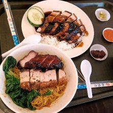 シンガポールのユーチューバーが紹介していたチャーシュー、ローストポークのお店に娘と。 ライスと麺のふたつをオーダーして食べ比べ(^^; 大きなブロックのお肉がモリモリ、美味しかったです😋