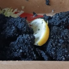 消し炭(@^^)/~~~ではありません(笑)世にも珍しい黒いから揚げです。竹炭を(^∧^)混ぜてあります(爆)ピノグリルよこすかポートマーケット店(@^^)/~~~さんですねぇ(笑)☀️😵💦(`Д´≡`Д´)??本店は北久里浜にありますねぇ(爆)(@^^)/~~~味は普通でした(笑)