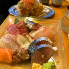 久々に居酒屋に来ました。 本当は、今日までの餃子の割引券があったので 王将に行ったんだけど、 すでに時遅し、餃子はもう欠品(餃子屋さんなのに⁉️)、長蛇の列。諦めました。 で、ダメ元でのぞいた居酒屋さんに。 すぐあとに入ってきた隣はまさかのタバコ🚬軍団。 ひゃー😵 けど、お刺身美味しいからまっいっか。