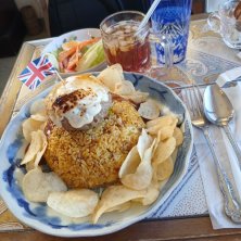 マボチョク(馬堀海岸直線道路)1.8kmの近く湯楽の里隣に、ある古美術カフェ☕😌✨伝さんですねぇ(笑)☀️😵💦(`Д´≡`Д´)??ビルの2F にありますねぇ(爆)(@^^)/~~~古美術を眺め、洋楽を聞き、海🌊を(^∧^)眺めながら、休憩😍✋✨別世界ですねぇ❗軽く済ませようと思ったら、デカ盛りメニューDARAKUなるものが(笑)挑戦したいと思います(爆)ドライカレージャンボ、周りにポテトチップス、ケチャップが半分かかっていて、チーズハンバーグのでかいのが乗ってます🎵