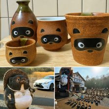上)私の投稿でご覧頂いている、信楽焼タヌキです。 下)滋賀県信楽のヤマト植西さんで購入しました。 埼玉へ帰任する際は、大きなタヌキの置物を買って本宅玄関に飾りたいのですが、家内から猛反対されてます😿