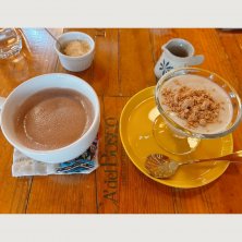 さつまいも糀と豆乳葛プリン(きなことメープルシロップ)&ホットチョコレート