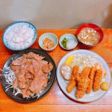 ◆生姜焼き定食 800円 ◆イカフライ(単品) 500円 ※税込 13:10で満席、店外に待ち客1組2名、6分ほどで入店着席。 生姜焼きは優しめの味付けで途中でとんかつソースを掛けて味変し、肉の歯ごたえがしっかりで最後は顎がだるくなりました。タルタルソース付きイカフライは肉厚で柔らかくてほんとに美味しい♫ 会計時に営業年数尋ねると外を指差しながら「あそこで30年、移転して30年で60年やってます。お爺ちゃんの代からです」と教えてくれました。前回の投稿で二代目?と書きましたが、三代目でした。