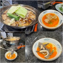 溶き卵でいただくもつ鍋 にんにくのきいた甘辛いお鍋 最初はお刺身用のセンマイをしゃぶしゃぶしていただく。脂の甘いもつ、お豆腐、玉葱、もやし、キャベツ
