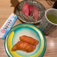 *マグロ3貫握り(トロ・漬け・赤身) ¥660 *サーモン ¥330