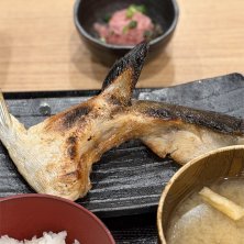 お店の前通ったら急に食べたくなってしまいふらっと入店。普段は朝ごはんは食べない派なのに😜 寒ぶりのカマ焼き定食。 寒鰤大好きなもので🥰
