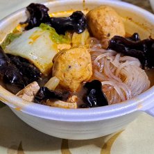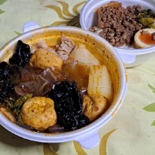 昨日(2月16日(月))の晩御飯1/3 【UberEats/七宝麻辣湯】 ●日替わりスープ春雨+ミニ魯肉飯 1,710円 辛さ中辛 0円 カスター(調味料)無し 0円 中太春雨を太帯春雨に変更 0円