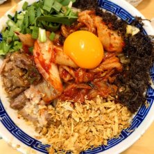 二郎系ラーメン 日替わりのキムチまぜそば 無料トッピングのガーリックマヨが美味しかった。