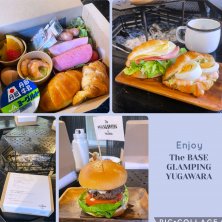 朝食はサンドイッチなどのbreakfast BOXが朝に届いて、自分で好きなようにサンドイッチを作ります。 焚き火を使ってもいいんだけど、朝は普通にトースターとIHの文明機器を使いました。笑 昨日食べ損ねたハンバーガー(キッズ用なんだけど、完全に大人以上のボリューム)も食べたので、また食べきれずにランチ用に持ち帰って帰りの🚆で食べました。 源泉かけ流しの温泉も部屋の中にあるし、良い宿だった✨