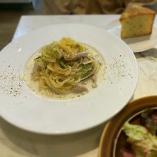 先月、叔母の老人ホームに面会する前に待合せで使ったイタリアン。 ラーメン屋さんみたいな残念な外観だったけど、めちゃめちゃ美味しかった。 今日は叔母の100歳のお誕生日。面会の前にまた寄ってみた。 今週のパスタ。春キャベツと豚のシャブシャブと塩コンブのパスタ。美味しかったです。 サラダは、ビーツのピンク色のドレッシング。 フォカッチャとコーヒーも美味しかった。 また次に行く今週のパスタが楽しみです。