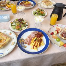 海が見えるペンションにて、おしゃれ朝ごはん。 サラダはシャキシャキ。手作りヨーグルトも。 なんと言ってもクロックムッシュが過去一美味しい😋