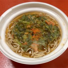 セブンイレブン およがせ麺 鰹出汁の旨味引き立つ 春菊天そば 550円税抜 小麦粉の方が多い蕎麦 まぁセブンの蕎麦は許せる つゆは鰹出汁が香る レンチンでしなしなな割に衣が硬い 旨旨!