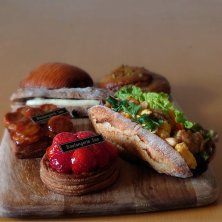 パンスイスラムレーズン ピスタチオロール メランジェクリームチーズ キャラメルチョコバナナデニッシュ 唐揚げのバインミー 苺のデニッシュ