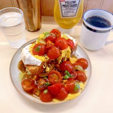 祐天寺のアレイキャッツでフレッシュトマトとチーズのオープンサンド♡ 元100円ショップの木造建物をリノベした古民家風カフェで、100円ショップの看板は残したままなので、行列ができてなければ、通り過ぎてしまうような感じ オープンサンドはトマトとスクランブルエッグがたっぷり盛られてて、カリッと焼かれたパンにフレッシュチーズもたっぷりで美味しかった٩(๑❛ᴗ❛๑)۶