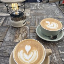 お店の中に入れずテラスでカフェ・オ・レ 寒い、、、