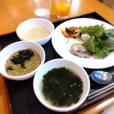 推し活女子にお付き合いして、韓国へ行ってきました。 が、相棒が起きてこないので、1人でホテルの朝ごはん🍚🍲 アワビ粥やらカンジャンケジャンやらワカメスープやらビビンバーやら済州島オレンジジュースやら、少しずつ味見のように食べてみました。 あんまり食べ歩きしてないので、これはこれで気が済みました(*´ڡ`●)