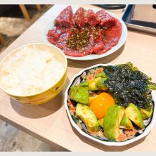 大横川へ河津桜を見に行き、帰りに木場にもできた蔵へお昼ご飯🍚 写真は、 ・蔵ロース ・厚切りハラミ ・アボカドユッケ ・中ライス どれもこれもめちゃくちゃ美味しかった🤤