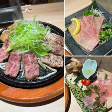 鶏、豚、牛の溶岩焼き 胡麻カンパチ カマンベールチーズの笑焼きと生ハム 焼酎や地元のウイスキーをいただきました。