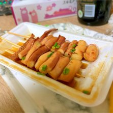 地元の人でごった返す英丸鮮魚店でイカ焼きを買いました。 レジ横にこんなのあったら買いますよね! 食べてみると恐ろしく柔らかいイカさんが甘さ控えめなタレをまとって美味しい。適度にプリンプリンしているので焼きたてはもっと美味しそうです。