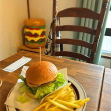 ここのハンバーガーめちゃくちゃ美味しい🍔 小物や絵画もいい感じ💕 カフェクオリティ高いのにコスパ良過ぎてびっくり🫢 元気になりたい時に来るお店です😆